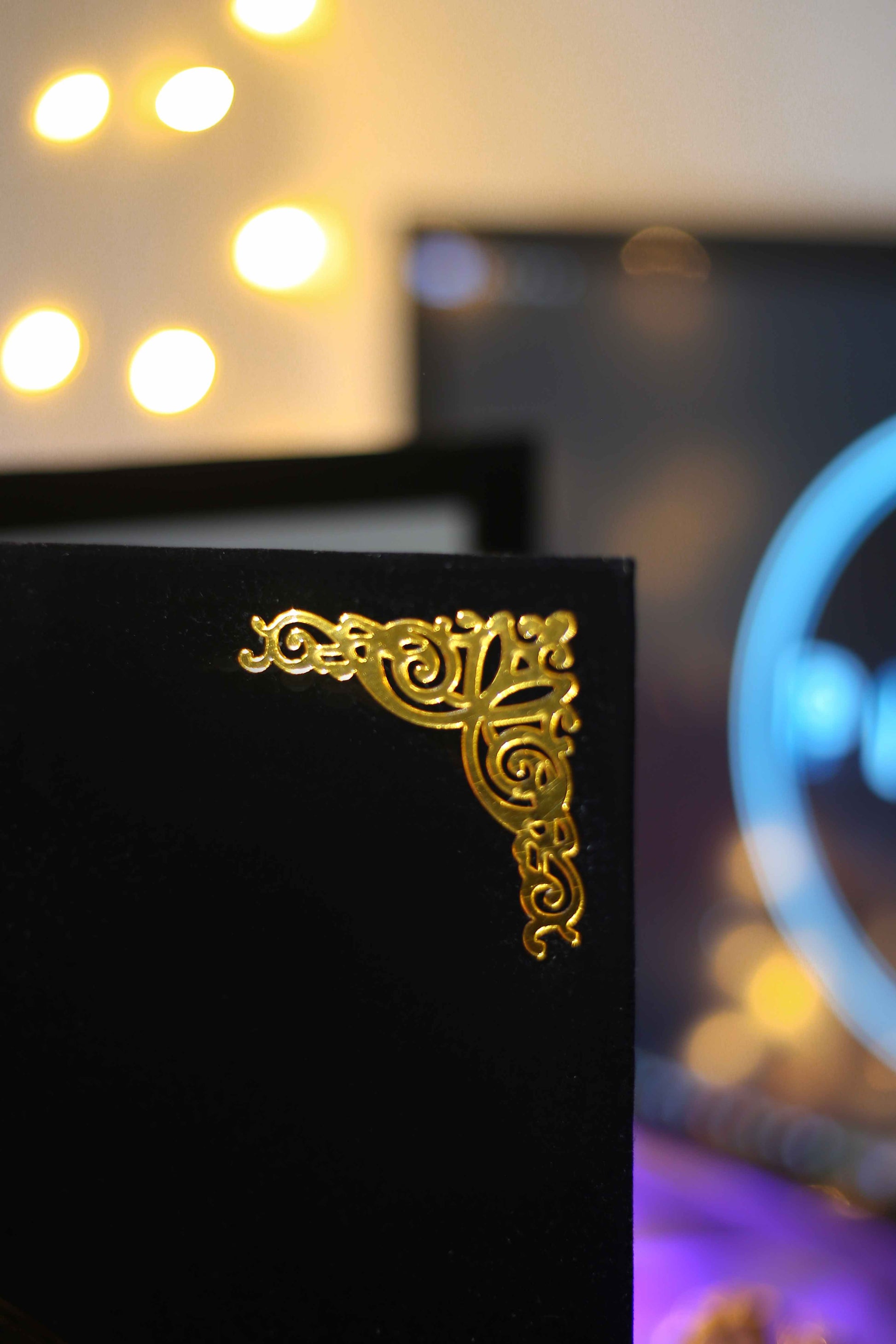 The use of gold or threads in the embroidery or stamping enhances the richness of the booklet, making it both functional and decorative.