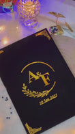 The booklet is made of velvet, a soft, plush fabric known for its smooth, rich texture. Velvet adds a sense of sophistication and formality, making it ideal for special occasions like a wedding.