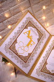 The use of gold or threads in the embroidery or stamping enhances the richness of the booklet, making it both functional and decorative.