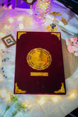The use of gold or threads in the embroidery or stamping enhances the richness of the booklet, making it both functional and decorative.