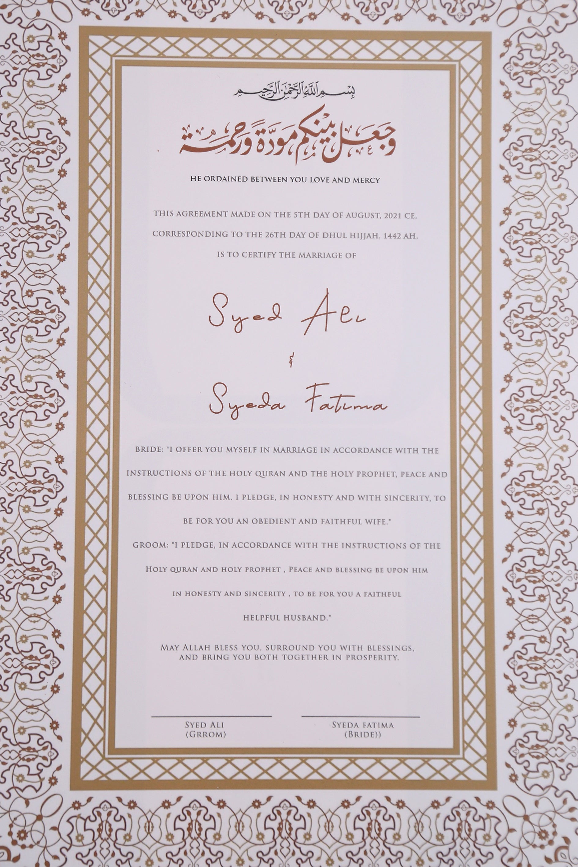 Premium Nikkah Contract | Custom Nikkah Nama | Islamic Wedding Contract | Personalized, Digital, + Printable Nikkah Certificate